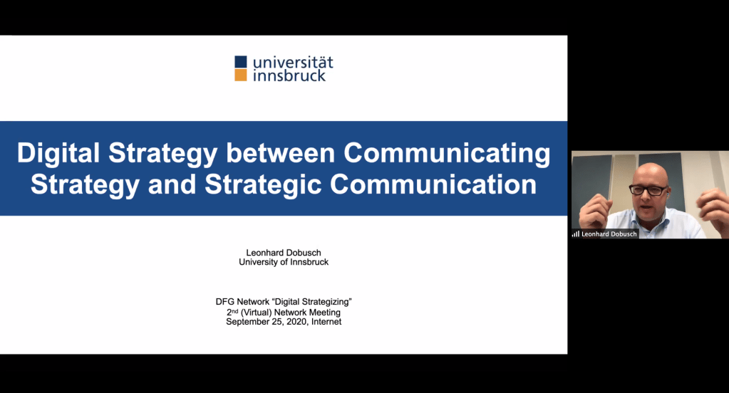 To address the dynamics, members of the network organized a workshop at the Annual Meeting of the Academy of Management (online). The workshop gave an overview of recent theoretical and empirical advancements in process and practice studies on digital strategizing, discussed the suitability, advantages and disadvantages of selected theoretical perspectives and methods to further advance corresponding research; and synthesized and shared with the scholarly community the outcomes to sharpen the future research agenda on the processes and practices of digital strategizing. More information and material can be found here: https://sap.aom.org/sap/webinars/digistrat